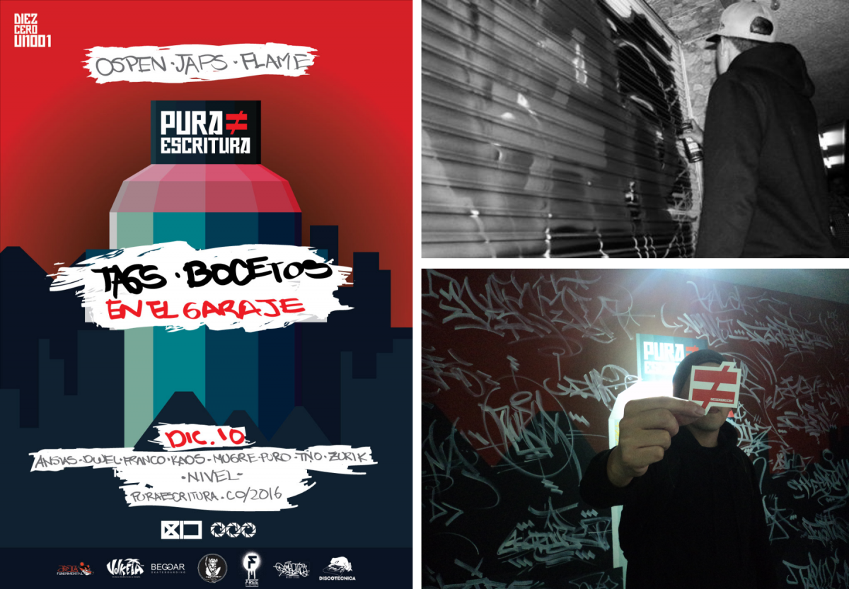 Pura escritura 2016 se llevó a cabo el 10 de diciembre en El Garaje 1001. Luego de haber realizado una convocatoria en línea para que los escritores participaran con sus bocetos o sus tags, fueron elegidos 32 finalistas para enfrentarse en una jornada única, llena de musica, letras, ilistración colores y buena energia, en la que se escogería sólo 1 ganador por categoría.