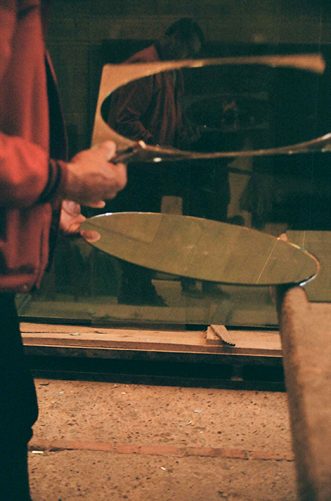 Yo me acuerdo de la primera semana cuando iniciamos la producción. Habíamos hecho otras pruebas pero sobre materiales cuadrados y en mi cabeza yo pensaba que podía generar un registro a ese formato circular de forma similar y me encontré que no. Y menos porque como el corte fue manual entonces todos tenían diferencias de milímetros y eso en la serigrafía paila. Entonces la forma más rápida de solucionarlo fue, parce, necesitamos contratar otras dos personas que nos ayuden y vamos a hacerlo 100% manual, color por color, espejo por espejo, y ya, vamos a demorarnos lo que nos tengamos que demorar, contratemos más gente para que nos rinda y poder hacer el proceso simultáneo, pero vamos a hacerlo manual 100%. Entonces hacerlo de esa forma hacía que uno cada espejo lo hiciera muy pendiente de que quedara re bien, de que la tinta quedara bien, de que si había un error tocaba repetirlo y hacerlo de esa forma. Yo creo que al final es lo que dio el resultado. Tomarse el tiempo para hacer las cosas bien así se presentaran esos percances es lo que dio ese resultado final.