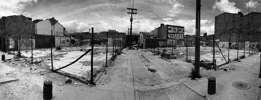 La tercera relación que quiero hacer, la encontramos en algunos de los espacios en los que aparece el graffiti. En Bogotá, los cambios que se dan producto de las obras realizadas para los sistemas de transporte y cambios viales, han sido importantes escenarios de consolidación del graffiti. Lo vimos hace unos años en la calle 26, en la calle 80 y en la 30 donde producto de la destrucción de las casas que allí habían, quedaron unas grandes superficies que rápidamente se llenaron de graffitis. Hoy vemos como se repite la misma historia en la av. 68, en la av Primero de Mayo y en algunos lugares de la 30, por donde pasará el metro y una nueva vía de Transmilenio (fig. 2). Los escenarios de destrucción, así como su falta de regulación y control, son espacios propicios para el graffiti, ya que este movimiento llega a donde nadie le interesa llegar. Podríamos considerarlos, lugares de origen. De alguna forma que pareciera extraña, el graffiti aprecia los lugares despreciables, los hace parte de sí mismo.